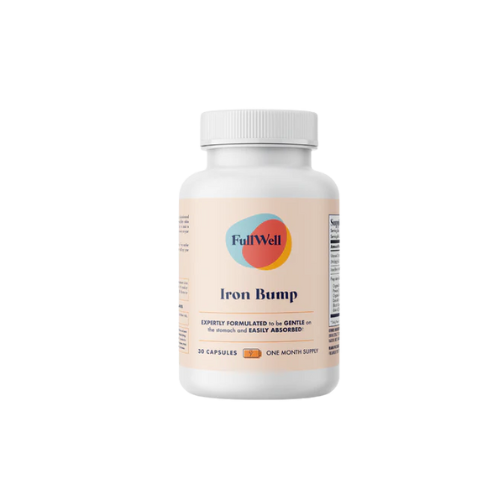 FullWell Iron Bump provides ferrous bis-glycinate, a gentle iron form with vitamin C for better absorption and blood flow. Third-party tested, it helps prevent anemia in pregnancy but requires doctor consultation for dosage.